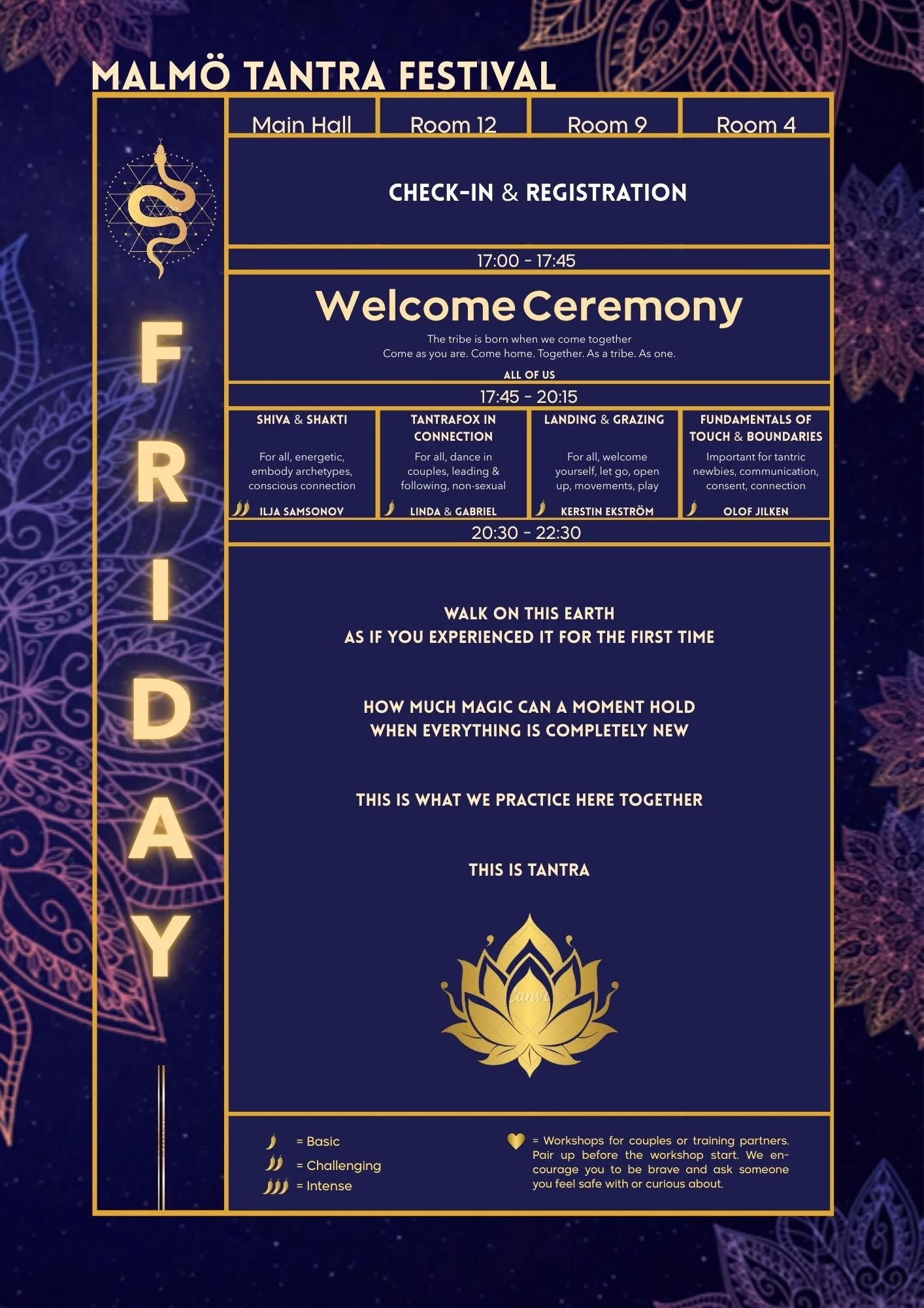There will be something for everybody, both new & experienced tantra practitioners and all in between. This is a drug- and alcohol-free event. Let's get high on life instead! We welcome you with open arms, and together we create a safe environment to explore, play, and celebrate life in. Hope to see you soon!